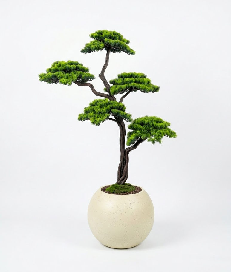 Our natural-looking bonsai trees meet concrete planters, a timeless material in industrial design. Designed with simple and modern lines, these concrete planters offer both durability and elegance to your spaces. The minimalist aesthetic of concrete highlights the natural trunk of each bonsai tree, while the artificial leaves create a long-lasting, maintenance-free beauty. Ideal for both indoor and outdoor spaces, this product adds a sophisticated touch to your living areas.