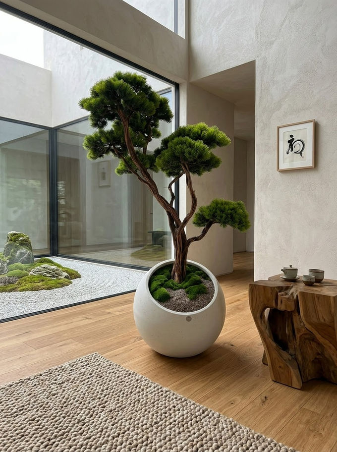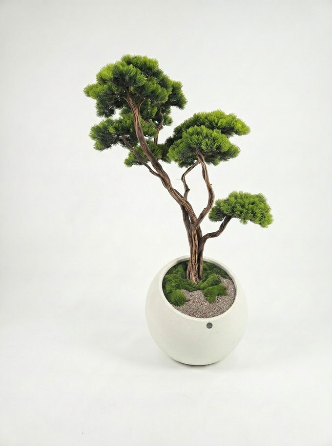 Our natural-looking bonsai trees meet concrete planters, a timeless material in industrial design. Designed with simple and modern lines, these concrete planters offer both durability and elegance to your spaces. The minimalist aesthetic of concrete highlights the natural trunk of each bonsai tree, while the artificial leaves create a long-lasting, maintenance-free beauty. Ideal for both indoor and outdoor spaces, this product adds a sophisticated touch to your living areas.