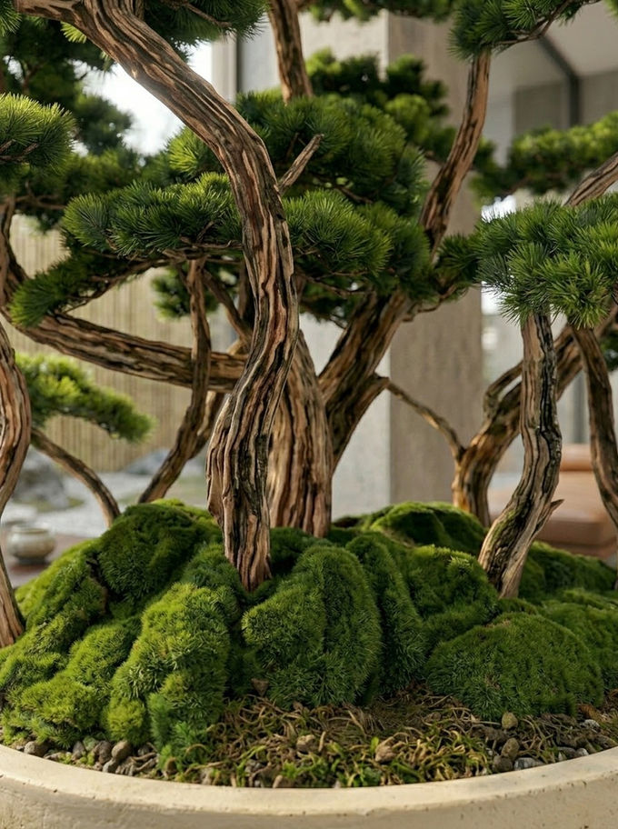 Our natural-looking bonsai trees meet concrete planters, a timeless material in industrial design. Designed with simple and modern lines, these concrete planters offer both durability and elegance to your spaces. The minimalist aesthetic of concrete highlights the natural trunk of each bonsai tree, while the artificial leaves create a long-lasting, maintenance-free beauty. Ideal for both indoor and outdoor spaces, this product adds a sophisticated touch to your living areas.