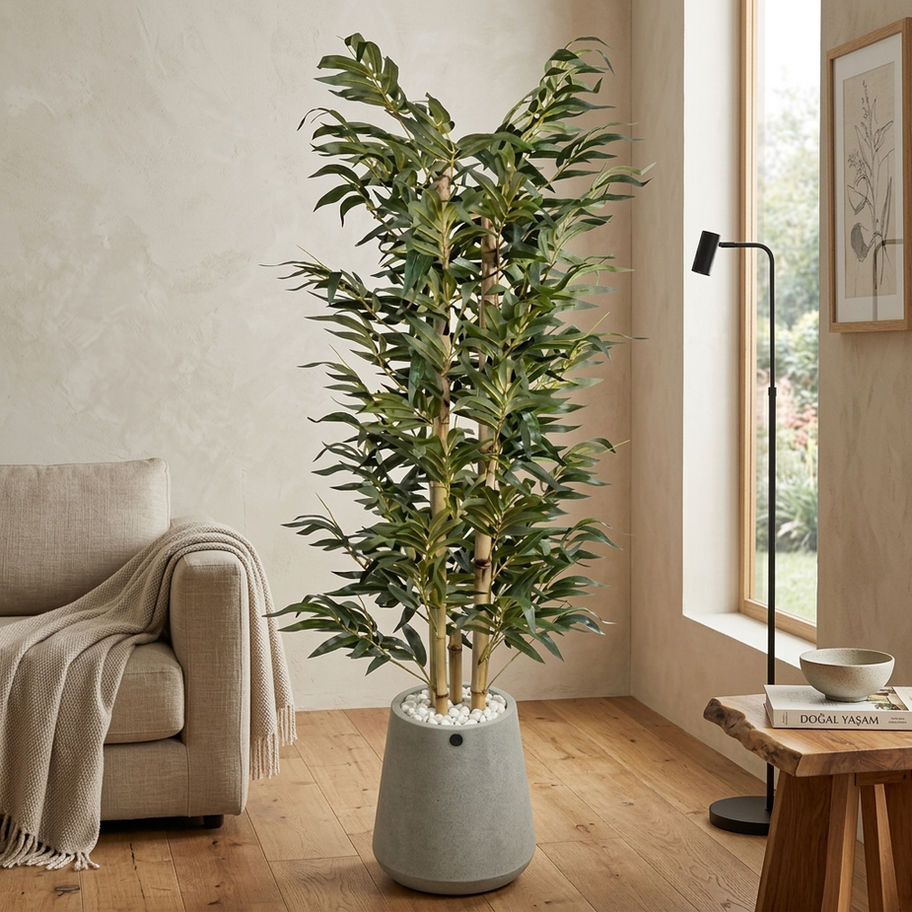 Bonaverte Premium: Saksılı Yapay Bambu Ağacı (Gerçek Dokulu) - 180 cm
